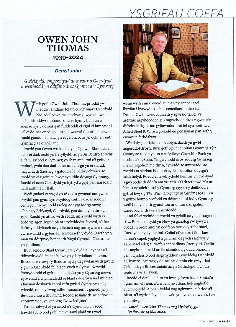 Teyrngedau i Owen John Thomas 1939 – 2024